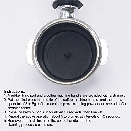 2. Steek het blinde stuk in de punt van de handgreep van de koffiemachine en doe dan een lepel van 3 tot 5 g speciaal reinigingspoeder voor de koffiemachine of een speciale koffiereinigingstablet;