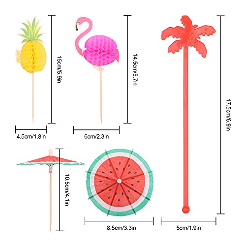 【Uniek design】Wij bieden verschillende kleuren en stijlen cocktailaccessoires, kokosboom cocktailsticks, 3d ananas flamingo cocktailsticks, watermeloen patroon cocktailparaplu’s, prachtige en elegante, levendige en levendige kleuren zorgen voor een mooie uitstraling, waardoor veel ontspannend tropisch gevoel wordt toegevoegd.