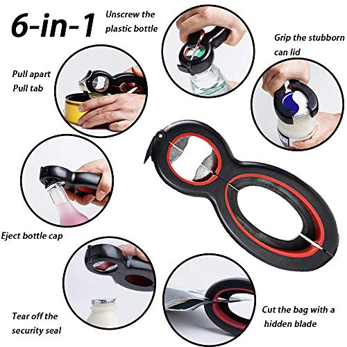 Specification: Multi-flesopener, multifunctionele flesblik en potgreepopener, 4 in 1 en 5 in 1 en 6 in 1 antislip flesopener…
