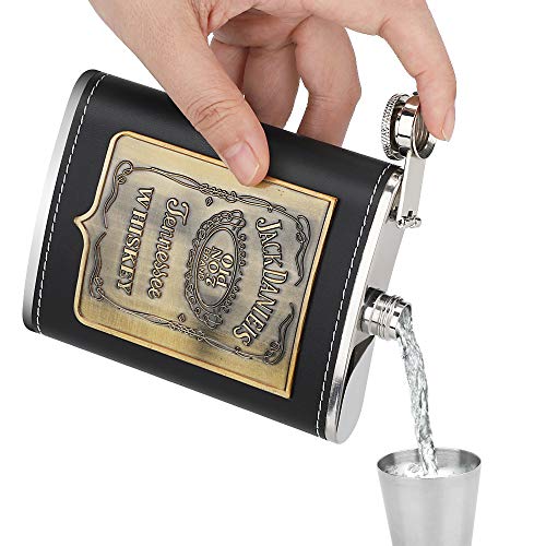 Specification: AIOIA Hip Flask Set, 8 oz roestvrij staal lederen draagbare heupfles voor whisky, Wodka Brandy Rum geschenkdoos mannen…