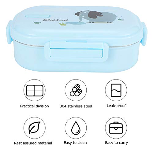 Specification: Geïsoleerde Lunchbox lekvrij roestvrij staal Bento Box Japanse voedselcontainer voor kinderen (massief blauw – olifant)