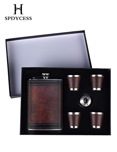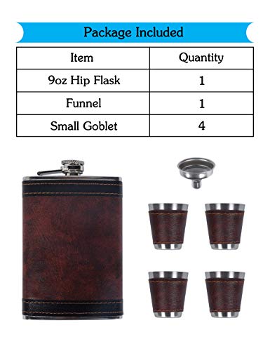 Specification: PU Lederen 9oz Heupfles Set Doos – Wodka Tequila Fles met 4 Bekersets Draagbaar Cadeau voor Mannen SPDYCESS