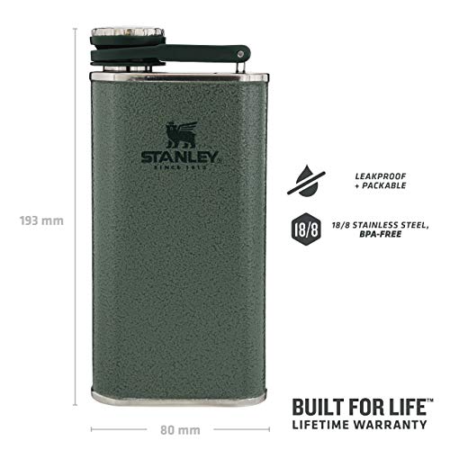 Specification: Stanley Classic Wide Mouth Flask 0.23L / 8OZ Hammertone Green, BPA-vrije heupfles, Roestvrijstalen zakflacon, Makkelijk…