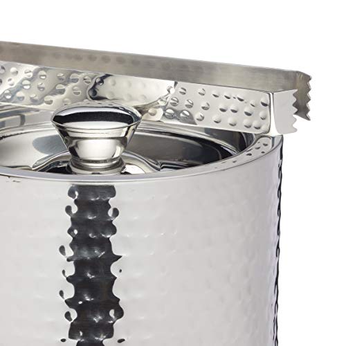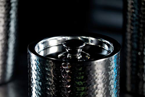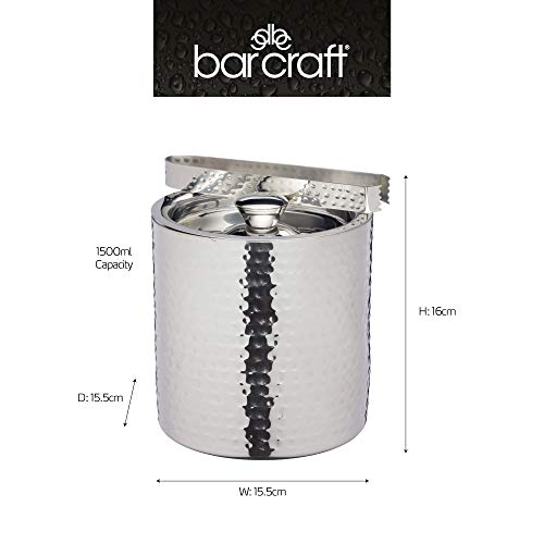 BarCraft ijsblokjeshouder roestvrij staal met deksel en tang, 1,5 l (2,5 pincet) – gehamerd
