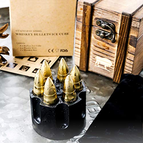 Specification: BUYGOO Roestvrijstalen whiskystenen bullets met basis – 6 stuks herbruikbare metalen ijsblokjes grote bolvormige…
