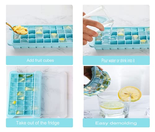 Praktisch design: ijsblokjesvorm, siliconen ijsblokjesvorm met deksel — De ijsblokjesvorm wordt geleverd met een hoogwaardige PP-afdekking. Het is handig om in de koelkast te stapelen, je maakt het mogelijk om mooie ijsblokjes te maken en tegelijkertijd het morsen en invriezen van overtollig water en beschermt de ijsblokjes tegen verontreiniging door andere geuren of smaken.