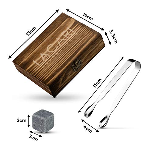 LACARI Whisky Stenen Set | [9x] Herbruikbare ijsblokjes | Whisky geschenk set met houten doos, Tang & stoffen zakje | E…