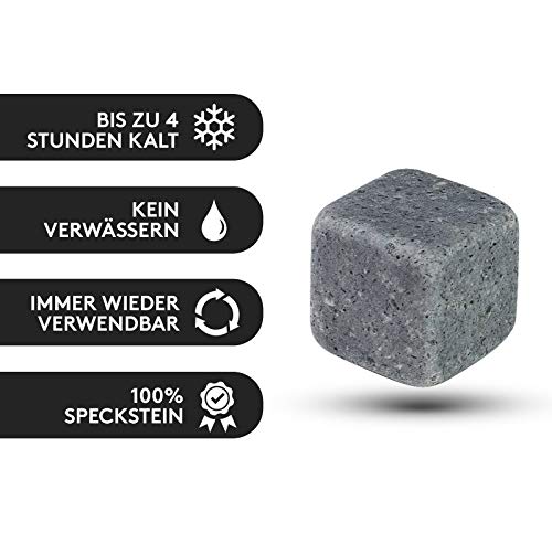 100% NATUURLIJKE SMAAK – Behoud de smaak en het aroma van uw single malt, Glenfiddich of tonicwater. De spekstenen whiskystenen en ijsblokjes zijn herbruikbaar en verwateren uw drank niet. Beleef uitzonderlijk plezier! Geleverd in een mooie houten geschenkdoos.