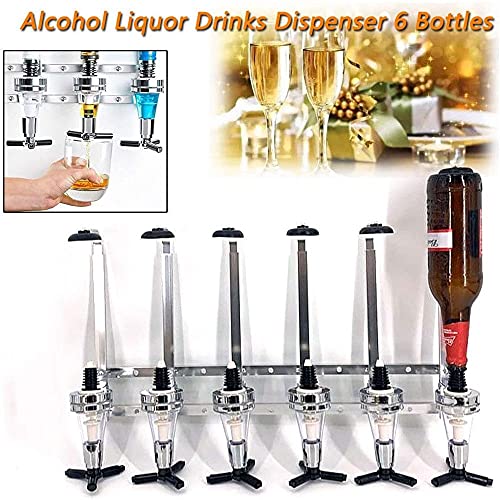 【 6-flesjes aan de muur gemonteerde dispenser】 6-fles aan de muur gemonteerde stalen flessenbutler drankrek/dispenser, gebruikt voor harde drank. Je kunt het in de bar of in je familie stoppen.