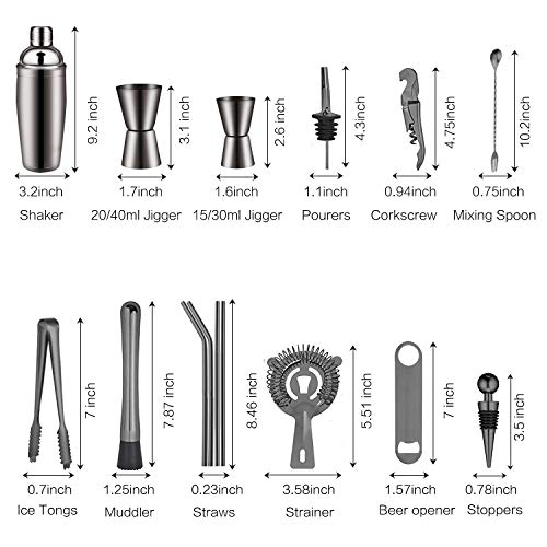 【Professionele cocktailset】Wanneer je drankjes mixt op een feest of zelfs in een bar, kan onze 19-delige premium bartending kit je professioneler maken, je kunt het gebruiken om wijn, margarita, mojito, muntchocolade, melk, sap en meer te mengen, wat perfect is voor je feest.Pak voor keuken, bar, melktheesoort, pubs, clubs, restaurants, coffeeshops en meer