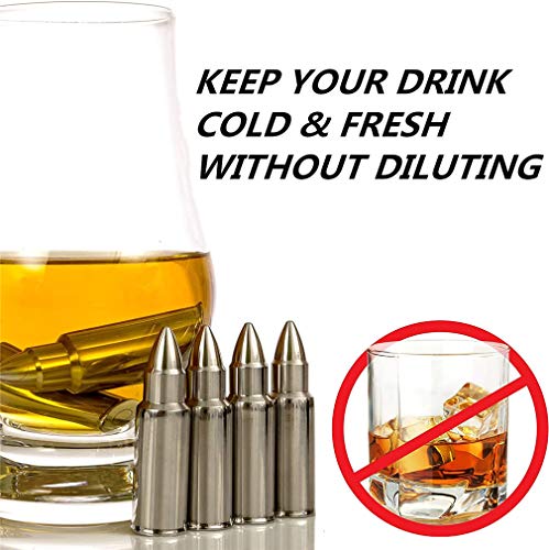 【Houd DRANKEN COOL】Onze Whiskey Bullet Sharped Stones Set is er om uw drinkervaring te revolutioneren door u te laten genieten van uw ijskoude drank. De extra grote gouden kogelkoelers kunnen worden gebruikt om whisky te chillen en te koelen, whisky, wodka, witte of rode wijn.