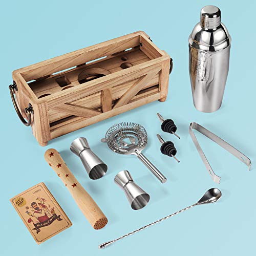 TJ.MOREE Barman Kit met 11-delige cocktailset en rustieke lade, houten lade, huisverwarmende geschenkbarman gereedschap…
