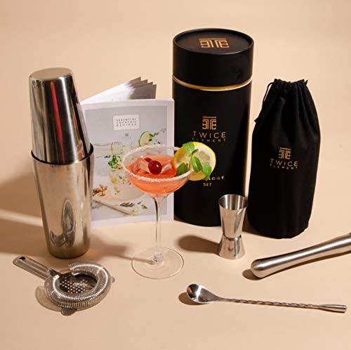 Twice Element® Cocktail Mixer Set | Boston-shaker set met: Elegante Geschenkdoos, Opbergzakje, Receptenboek en alle…
