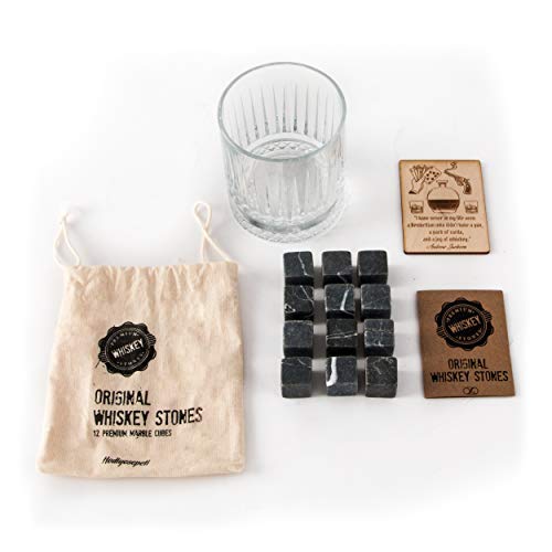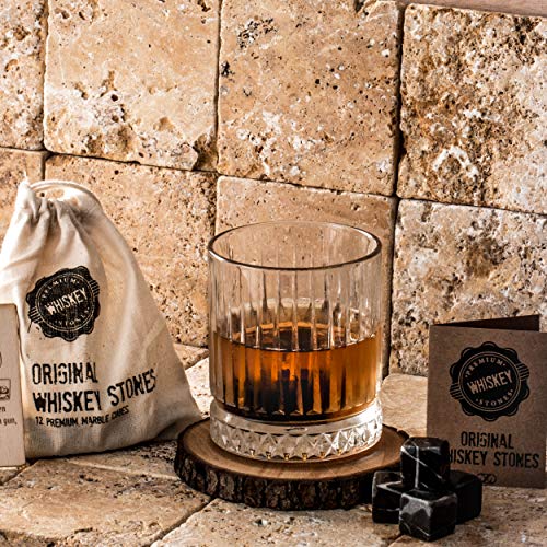 Whisky Gift Set | Grote Oude Fashioned Whisky Glass | 12 stks Whiskey Stones met Pouch Gift Box | Perfect Idee als Gift…