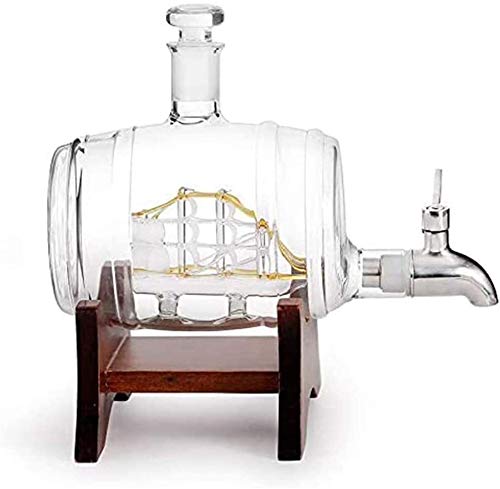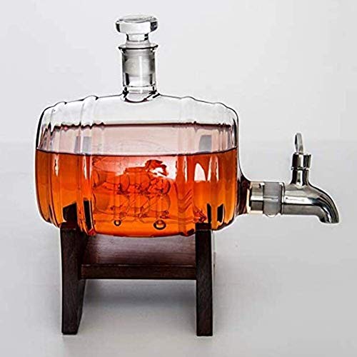 Specification: Whisky Decanter Set houten frame met kraan wijn vatvormige glazen flescontainer met 2 glazen beker voor bar Home Party…
